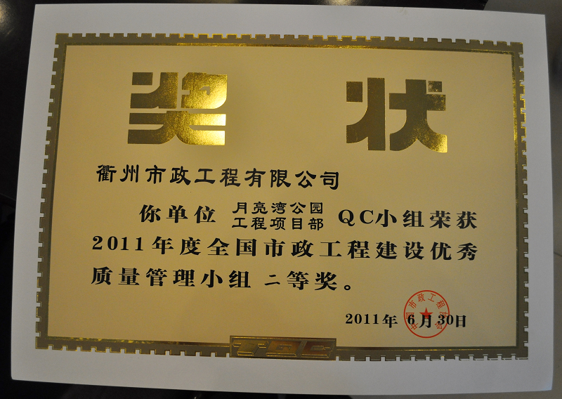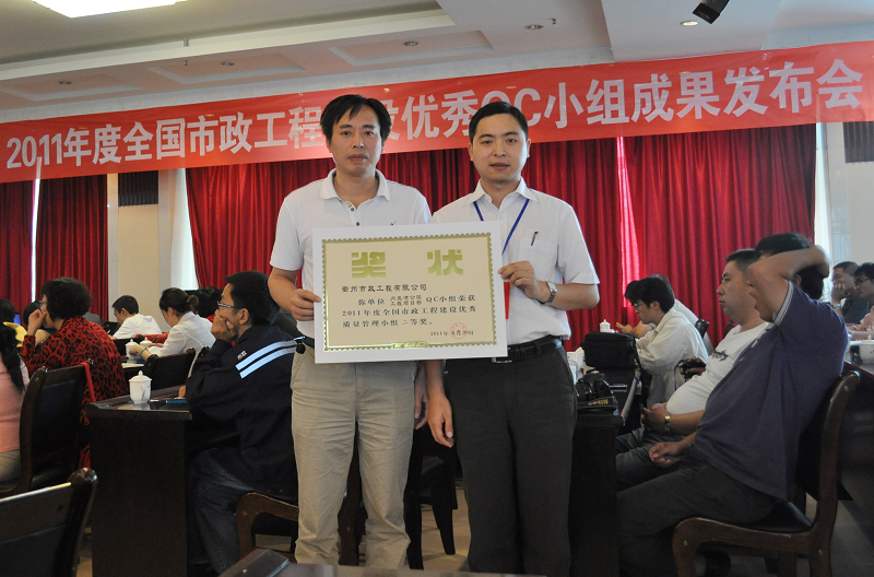 公司QC成果榮獲全國市政工程建設(shè)優(yōu)秀質(zhì)量管理小組二等獎(jiǎng)