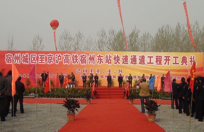4月8日,京滬高鐵宿州東站快速通道工程在施工現(xiàn)場舉行盛大的開工典禮,宿州市政府、交通局、海事局等領(lǐng)導(dǎo)及施工單位代表、各界佳賓出席,公司董事長鄭榮忠率項(xiàng)目部人員參加了開工典禮。
