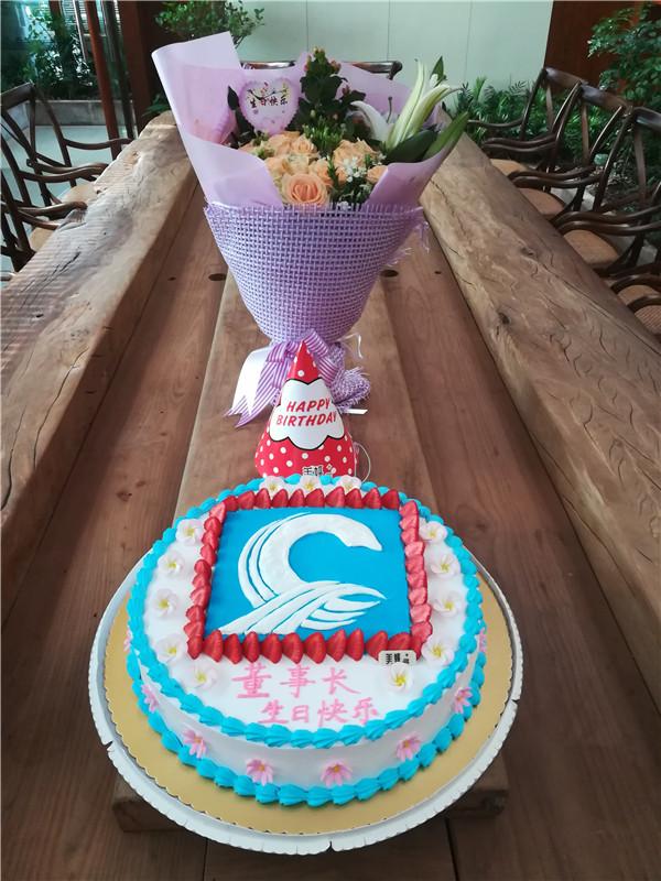 大家訂制了一個有公司logo的生日蛋糕,一起唱生日歌,送祝福,用特有的方式為董事長送上一份別樣的生日禮物。