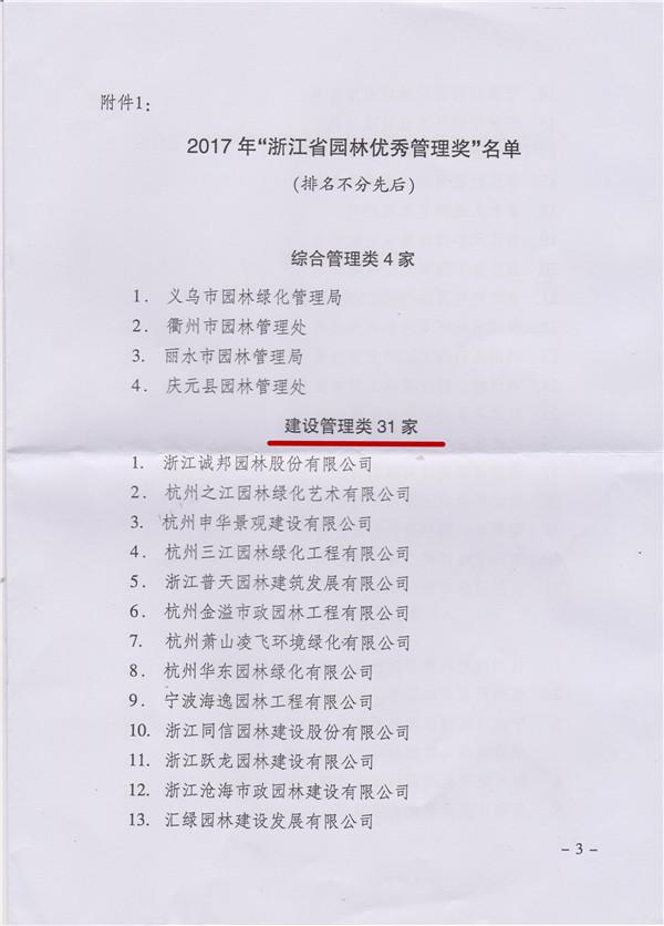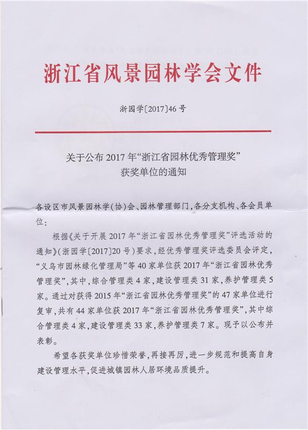 熱烈祝賀我司榮獲2017年“浙江省園林優(yōu)秀管理獎(jiǎng)”。