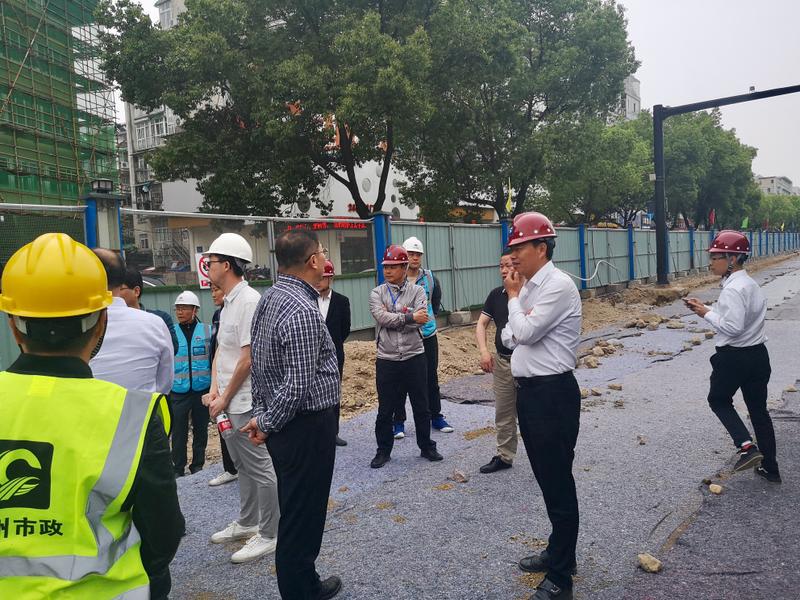 56日下午,副市長(zhǎng)毛建民等領(lǐng)導(dǎo)赴由衢州市政園林股份有限公司承建的府東街改造工程工地現(xiàn)場(chǎng)進(jìn)行視察工作。施工現(xiàn)場(chǎng)彩旗飄揚(yáng),衢州市政董事長(zhǎng)鄭榮忠率事業(yè)部、項(xiàng)目部有關(guān)人員早早的來(lái)到工地大門(mén)口迎接,給予了領(lǐng)導(dǎo)們熱情的招待。