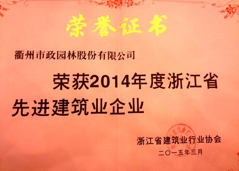 公司被評為2014年度浙江省先進建筑業(yè)企業(yè)