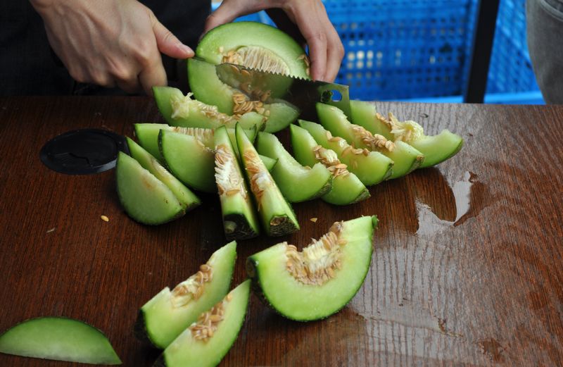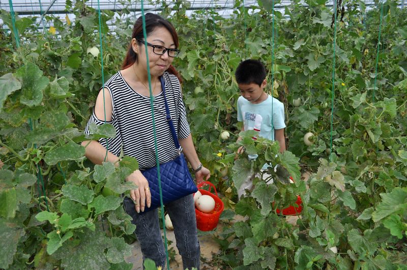 ?????? 農(nóng)業(yè)基地數(shù)十個大棚整齊排列,各類瓜果蔬菜郁郁蔥蔥、滿地飄香。公司車隊一到,熱情的老板就捧出熟透的香瓜讓大家盡情品嘗。之后大家扶老攜幼、呼朋喚友,紛紛挎上籃子,鉆入西紅柿、網(wǎng)紋瓜、香瓜、西瓜或辣椒、茄子等各個大棚開始奮戰(zhàn)。