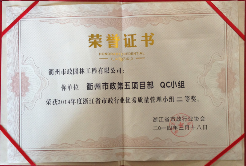 我公司QC成果獲省市政行業(yè)二等獎