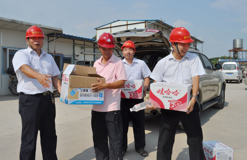 公司慰問(wèn)組一行來(lái)到工地現(xiàn)場(chǎng),為作業(yè)和管理人員送上飲料和防暑藥品,并對(duì)各項(xiàng)目施工人員的作息時(shí)間、住宿條件等進(jìn)行了解,對(duì)防暑降溫措施的落實(shí)執(zhí)行情況進(jìn)行檢查督促。