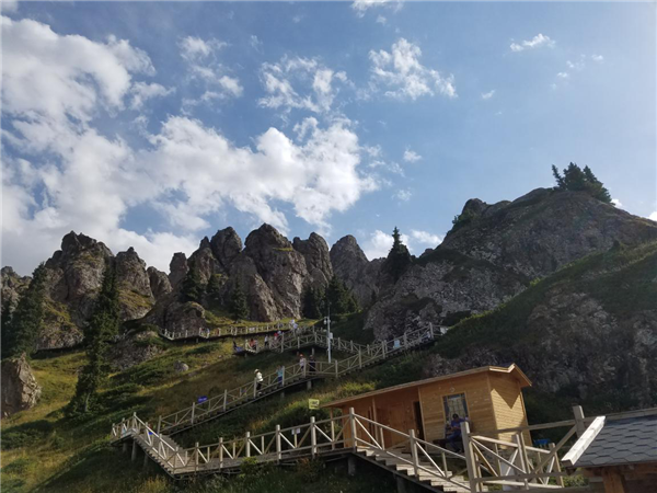 馬牙山景區(qū),在天池之上,坐索道上去,高處空氣稀薄,溫度較低。